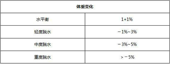 感到口渴时意味着你的身体开始脱水,但是,口渴并不能作为机体是否缺水的指标。检查机体水平衡的方法是在运动前后称重,运动前称重最好是在晨起排便后。比较运动前后体重可以预估运动中机体内水分的流失,只有及时补充丢失的水分,才能保持身体机能稳定。