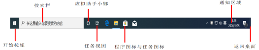 ④通知区域:显示当前日期时间以及一些特殊程序和计算机设置状态的图标。